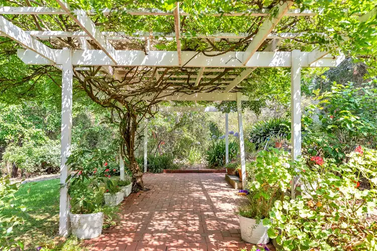 Paths meander through the greenery in the delightful rambling garden, with a variety of trees including birches, pear and poplars, ferns, camellias, bougainvilleas, pistachio and natives. An old corkscrew willow enhances the area where a bridge over the creek leads to a sheltered patio with fountain.