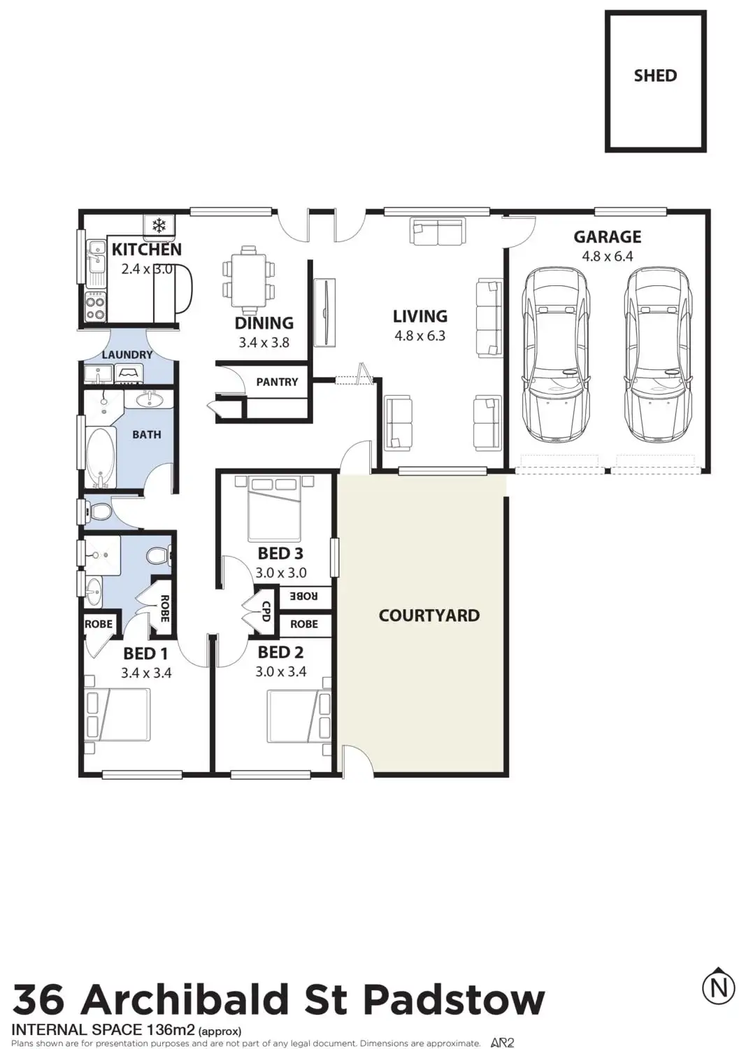 3 Bed • 2 Bath • 2 Car • 556m²