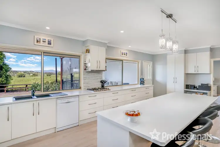 Enjoying front row seats, the kitchen overlooks the inground saltwater pool with a gorgeous country backdrop you’ll never tire of. Oodles of storage, expansive benchtop space, plus a massive walk-in pantry is sure to please any budding KonMari enthusiast.