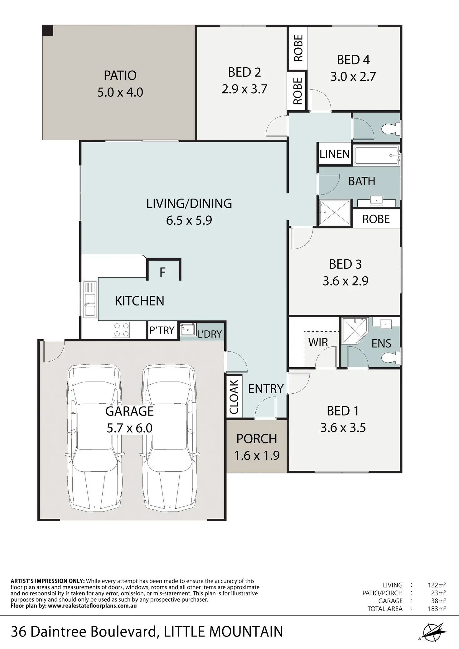 4 Bed • 2 Bath • 2 Car • 650m²