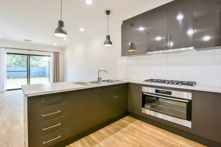 The striking light and bright flowing open plan living area, features a huge designer kitchen with stainless steel appliances, numerous cupboard space and a grand gas cook top and electric oven, perfect for the master chef within you. Three generous sized bedrooms all with mirrored built in robes, master suite with large vanity en-suite and walk through robing. A neutral colored family bathroom including bath and shower, front lounge and single garage, with side access to the low maintenance garden and garden shed.
