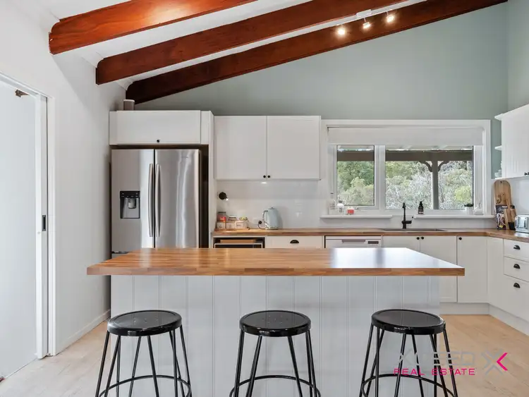 Beautifully hidden from the road by well-established gardens, deciduous trees and lending itself to families seeking a Margaret River lifestyle with the convenience of everyday amenities almost at your doorstep, this impressive sanctuary is filled with plenty of charm and character, with both cedar and Jarrah amongst the enchanting mix of old and new timbers utilised throughout. The residence’s double-door portico entrance forms part of a spectacular wraparound balcony deck that allows you to entertain to a picturesque backdrop anywhere you like and all year round, whether you are chasing the sunshine or looking to avoid it.