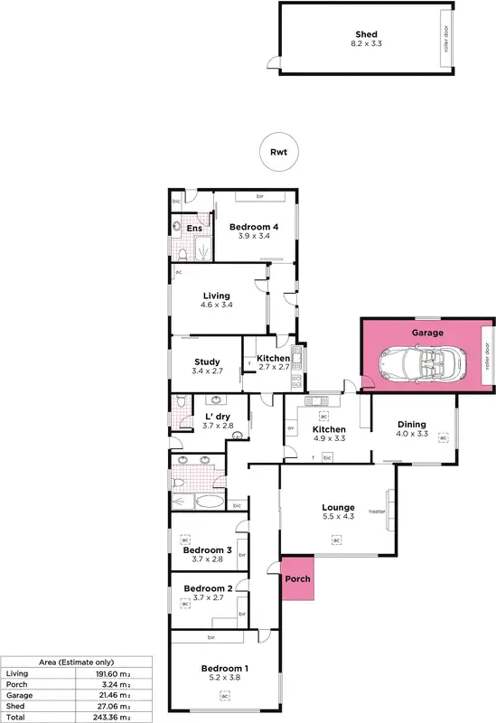 5 Bed • 2 Bath • 2 Car • 751m²