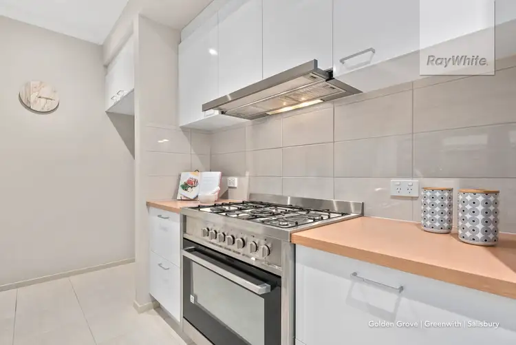 The floorplan offers plenty of room for a growing family with three good-sized bedrooms. The master suite is located at the front of the home and is a true retreat with a large ensuite bathroom and walk-in robe, plus stainless steel ceiling fan, upgraded carpets and beautiful lush window coverings.