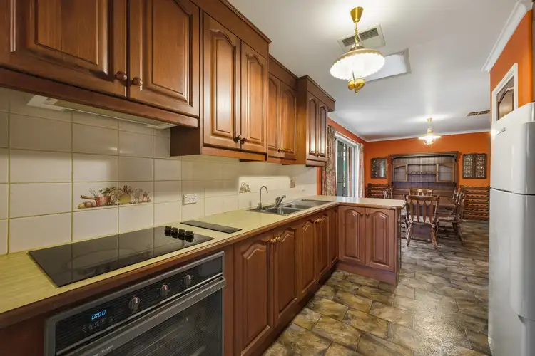 A spacious foyer opens into the light-filled lounge, where large windows and retro touches set a cosy, homely tone. Flowing through, the kitchen showcases its vintage character with timber cabinetry, electric cooktop, pantry, and plenty of storage, all overlooking a formal dining space—ideal for everyday meals or hosting guests. Step through sliding doors to discover your own private retreat, with a paved patio surrounded by leafy garden beds and a versatile rumpus room—perfect as a games area, hobby space, or additional living zone.