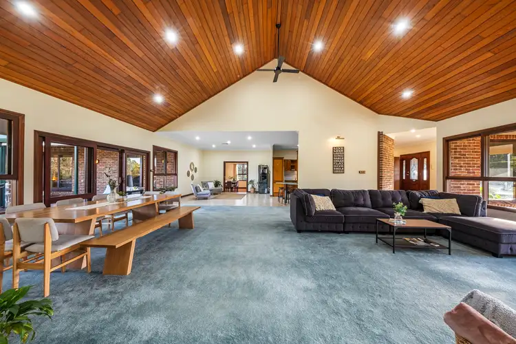 Features: - 2.8-acre (approx.) rural retreat with property family-sized residence and inclusions - Six bedrooms plus a study, including a master with a private balcony - High cathedral ceilings and cedar-framed windows and doors - Formal lounge and dining room with fireplace and polished timber floors - Home theatre with bar area, walk-in linen closet, huge laundry, and ducted AC - Heated mineral pool and spa, covered alfresco area, and pool house - Town water and sewer, NBN, exterior sensor lighting, and upgraded creek irrigation