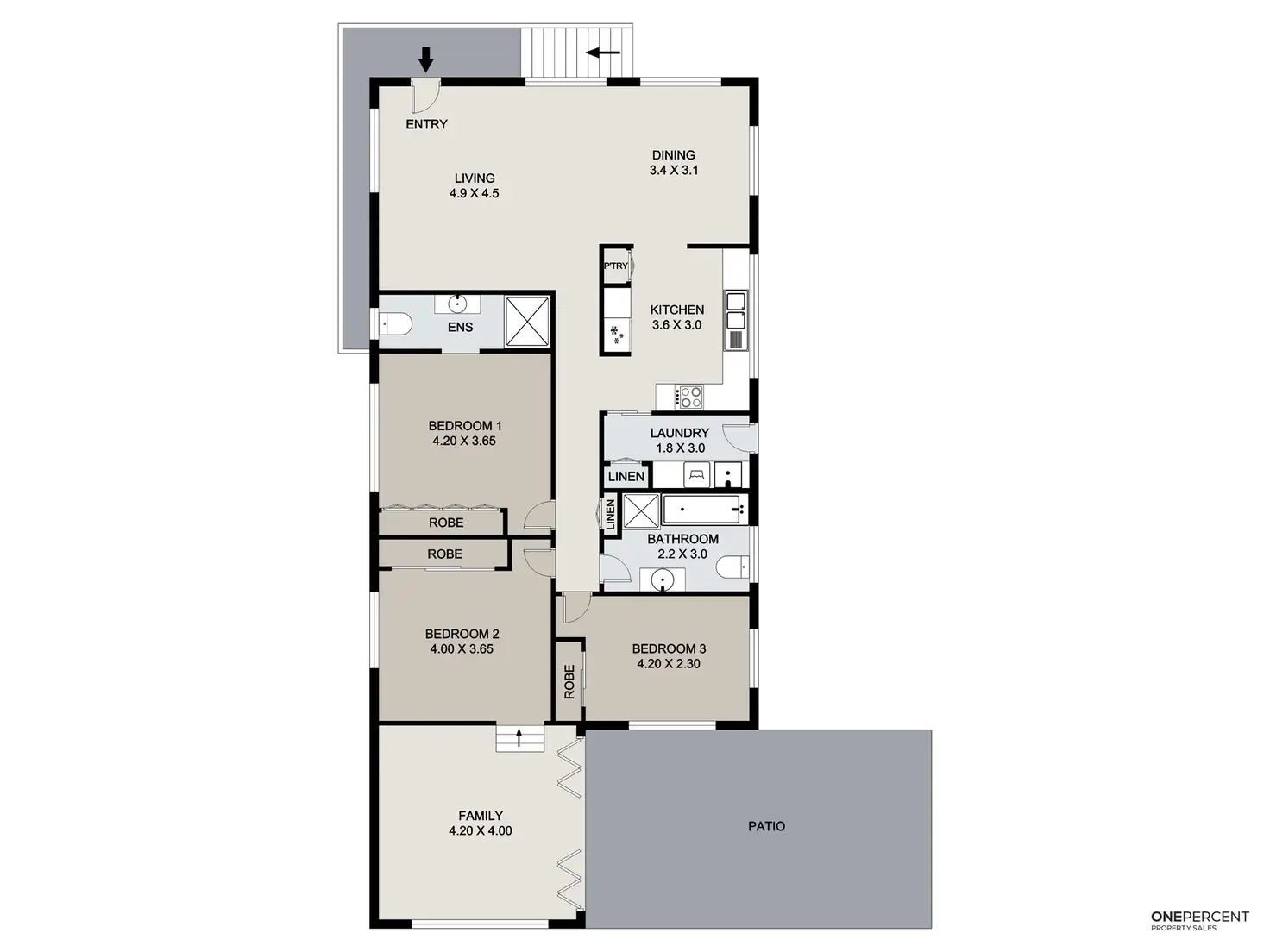 3 Bed • 2 Bath • 1 Car • 607m²