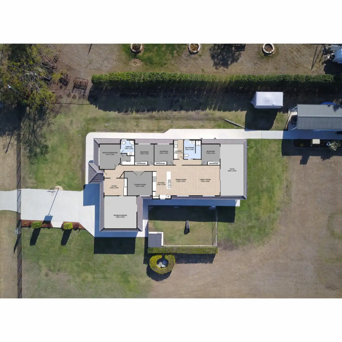 The huge 9 metre long by 4 mere wide alfresco pergola area of the home has outdoor power and overlooks the level rear yard, the awesome as well as the uninterrupted scenic views to the surrounding mountain ranges. The kids and your pets will adore the open space that this big block offers and there is still loads of room for dad to add more sheds to house your prized caravan, boat, cars or other big boy toys. In fact there is enough room for you to drive in and turn around a large truck or for the tradies to park machinery or store materials.