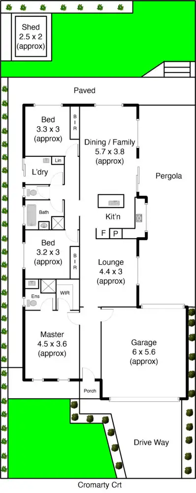 3 Bed • 2 Bath • 2 Car • 410m²