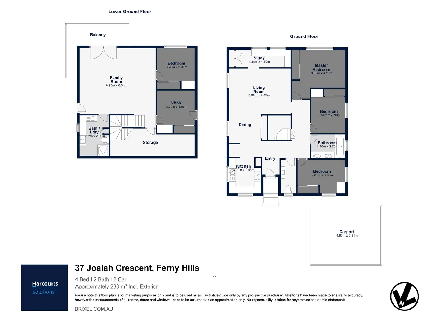 Moving to the lower level via the internal stairs there is a second great-sized study, a 4 bedroom and a spacious tiled family room, perfect for movie nights. The 4th bedroom is private & perfect for teenagers or when guests come to stay. There is also storage, an additional bathroom & internal laundry on this level. The beautiful french doors are a feature on this floor, which open to your private deck, a great place to enjoy afternoon drink, while the kids play in your fully fenced backyard. There is plenty of room for a trampoline & even potential to create your dream backyard here, the options are endless.