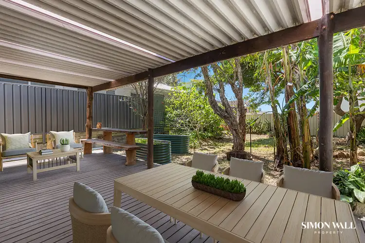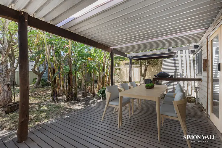 Alongside the kitchen and further illustrating the retro inspired interiors is the main bathroom that boasts a combined shower bath and vanity. Off to the side of the bathroom is an atrium style outside space that could easily become that special place you enjoy a quiet cup of tea whilst enjoying the melodic sounds of the pacific ocean lapping in the background.