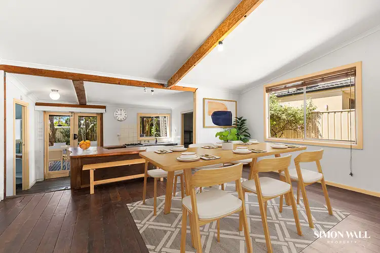 Flowing freely through the middle of the home for ease of living is the combined open plan living and dining areas that merge seamlessly with the sunken kitchen. The vintage kitchen boasts a statement timber bench top, gas top cooking, stainless steel appliances and looks out into the nature filed backyard which is like having your own Harris farm market with all the fruit trees that have been grown and raised over the years.