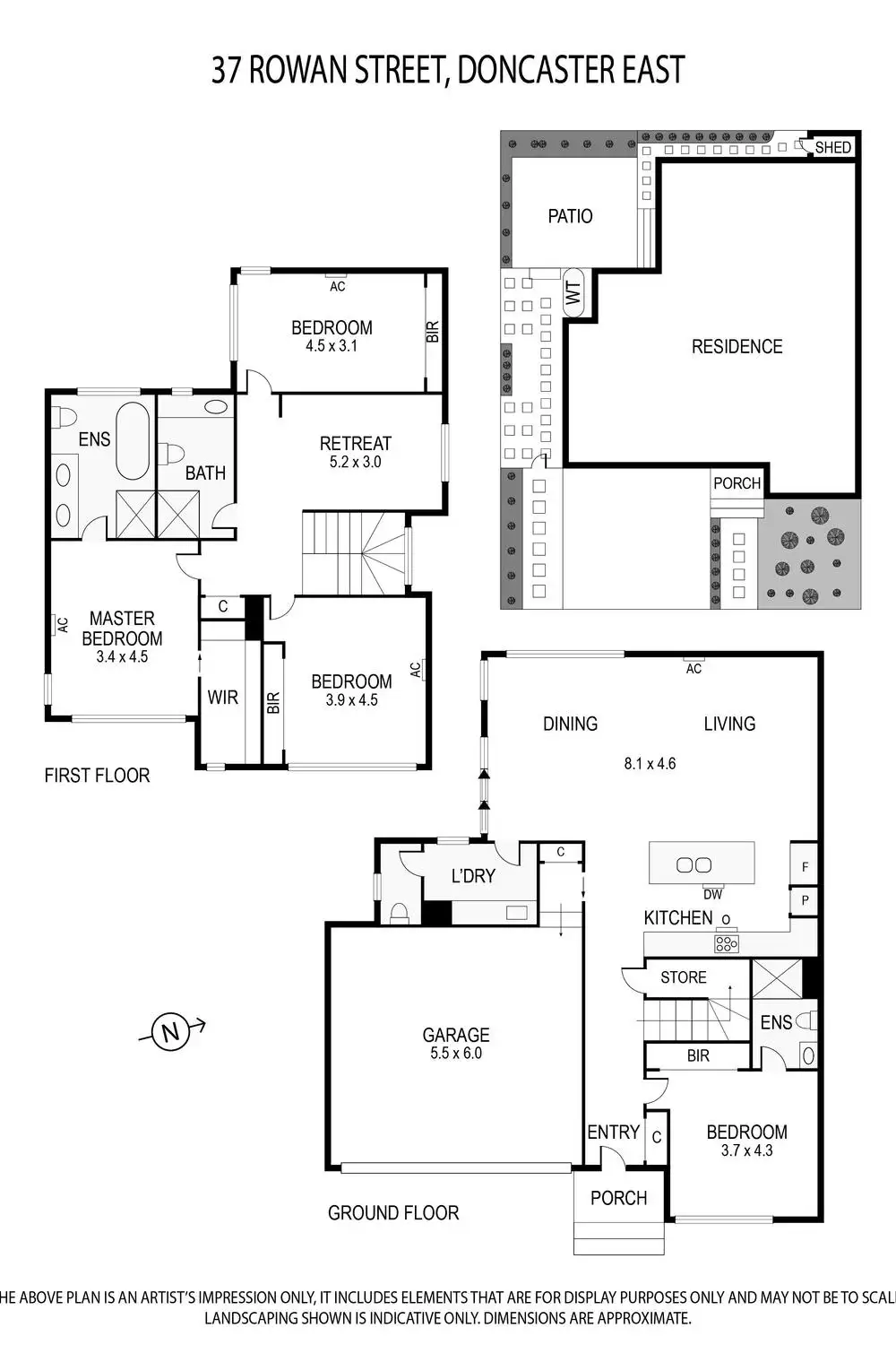 Accented with designer tones, this glamorous residence sets a new benchmark in low-maintenance lifestyle living with its premium fixtures and finishes along with exceptional placement in an ultra-convenient locale. Superior style starts from the moment you step foot inside with stunning contemporary floorboards and high ceilings flowing throughout the open plan living, dining and kitchen domain. The kitchen itself showcases spectacular beauty with its stone benches, 900mm Bosch appliances, integrated dishwasher, soft-close cabinetry, double undermount sink and waterfall end island breakfast bench, while glass sliding doors invite guests out to the paved entertaining zone with low-maintenance surrounds. The smart configuration of the home places the guest/in-law bedroom on the ground floor accompanied by a mirrored built-in-robe and ensuite, whereas the upstairs boasts a retreat plus three robed bedrooms, including the lavish master suite with walk-in-robe and fully tiled ensuite featuring a twin stone vanity, rainfall shower, bath and toilet, further served by a matching bathroom with toilet. Further complemented by a full-sized laundry, 4th toilet, ducted heating, split system air conditioning, under stair storage, LED lighting, double glazing, water tank, garden shed plus a double garage with internal access. Ideally positioned, close to Doncaster Gardens Primary, East Doncaster Secondary (zoned), Ruffey Lake Park, Jackson Court shops, Westfield Doncaster Shopping Centre plus the Eastern Freeway.