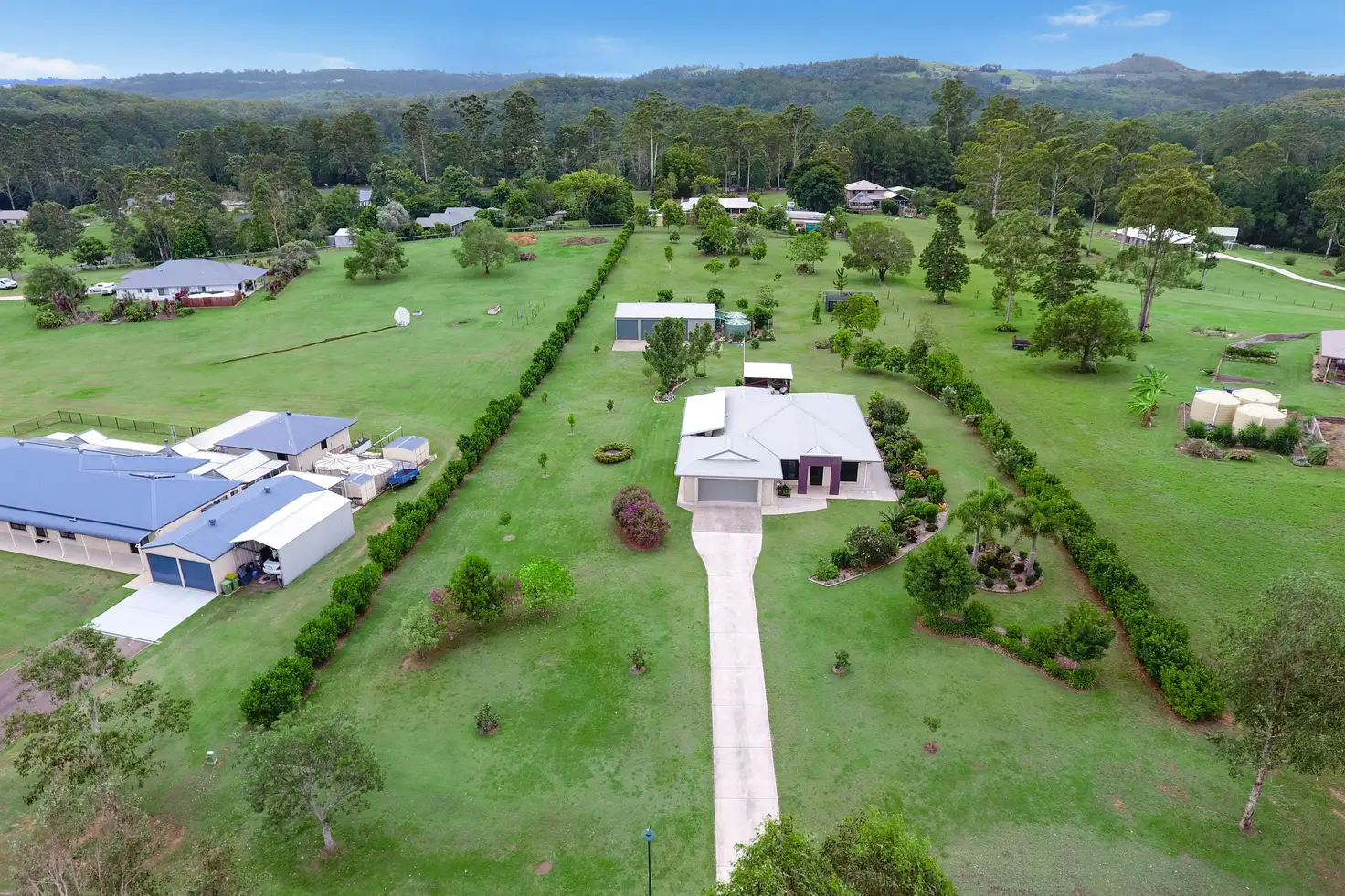 Solar hot water as well as 2 kw solar power to offset your power bills, just under 70,000 litres in tank water, great green house, variety of fruit trees and the ideal environment to enjoy the best of the Sunshine coast hinterland living.