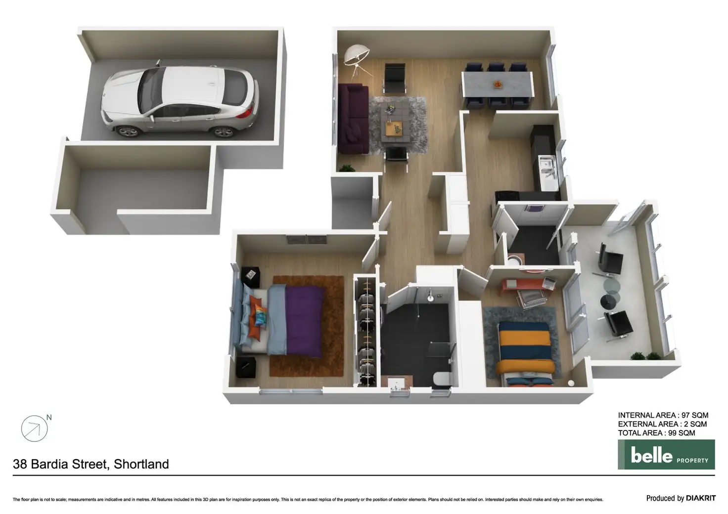 2 Bed • 1 Bath • 2 Car • 630m²