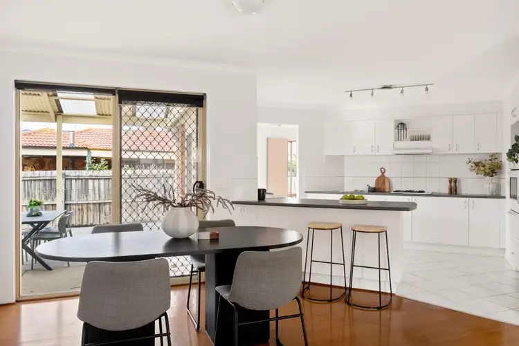 Step inside and immediately feel the warmth of the home’s expansive layout, with two distinct living zones and a dedicated study nook – ideal for those working from home or needing a quiet retreat. The living area at the front of the home is filled with natural light and flows effortlessly through to the open-plan kitchen, dining and family area. Designed for modern functionality, the kitchen features wraparound benchtops, abundant cabinetry, and a breakfast bar ideal for casual meals or entertaining.
