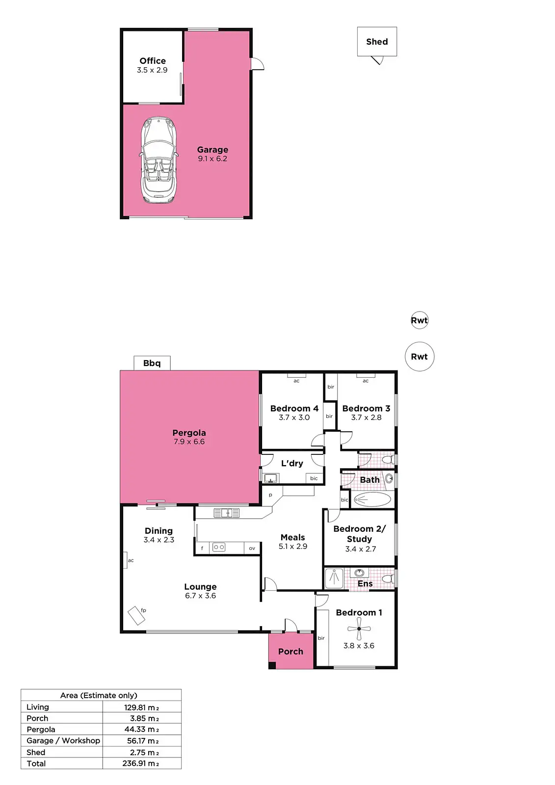 4 Bed • 2 Bath • 2 Car • 1058m²