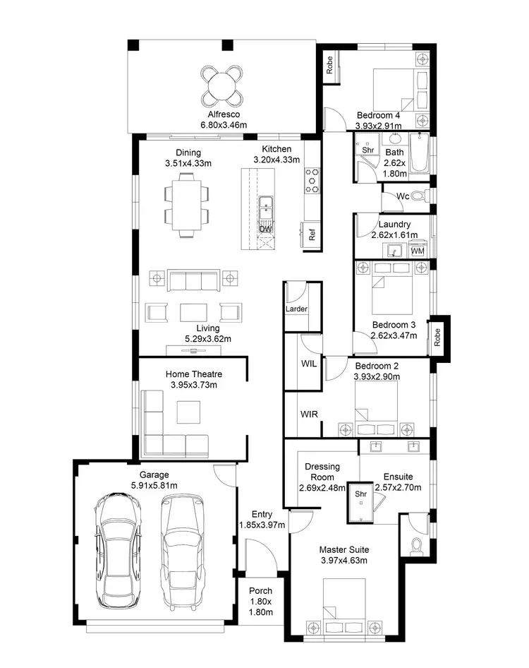 The central living space brings the kitchen, dining, and lounge together in an open, light-filled hub that connects straight out to the alfresco. A separate theatre offers a cosy second space for movie nights or quiet downtime. Outside, the backyard is designed for low-maintenance living, giving you more time to enjoy the weekends.