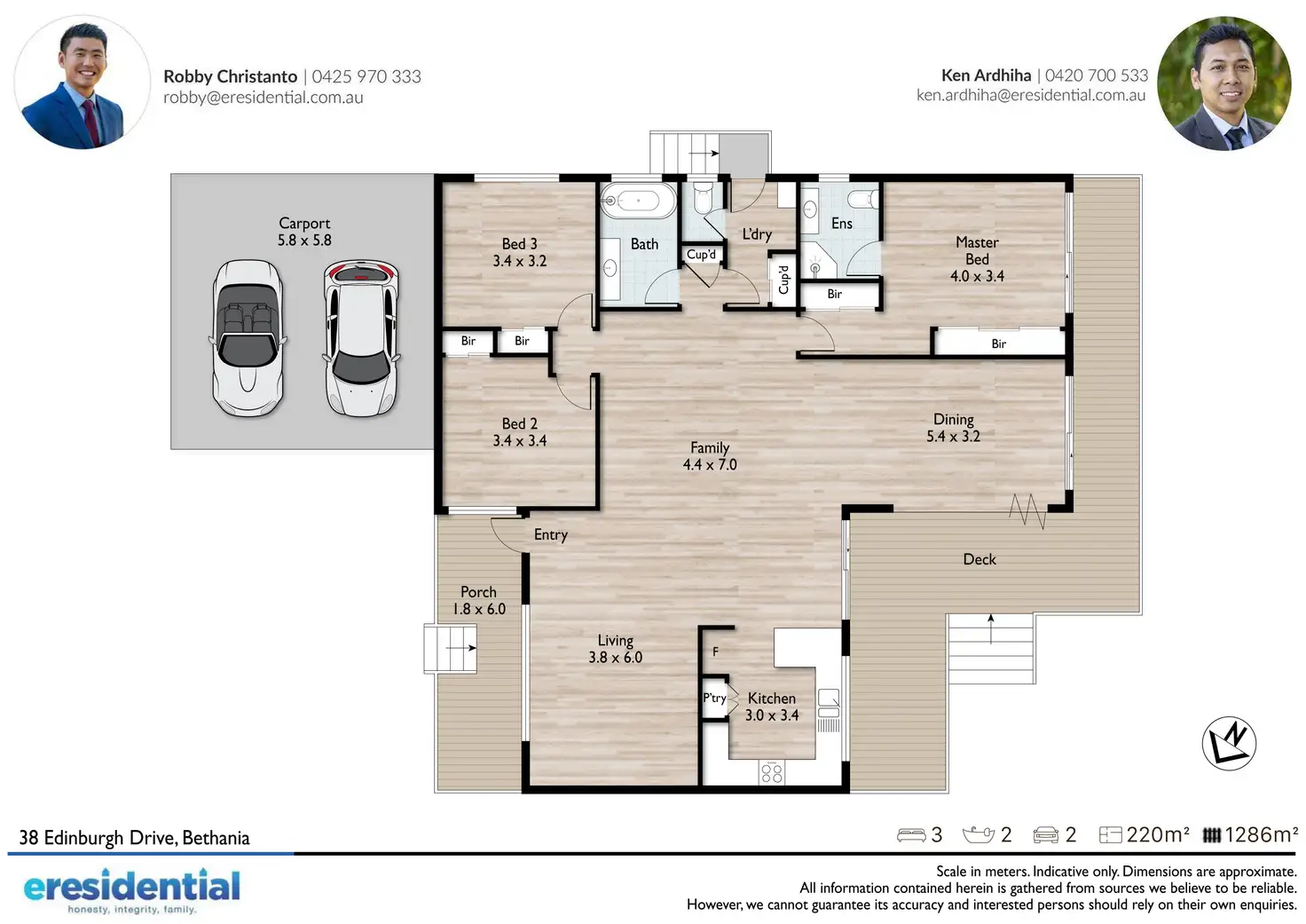 -3 bedrooms, 2 bathrooms, double carport