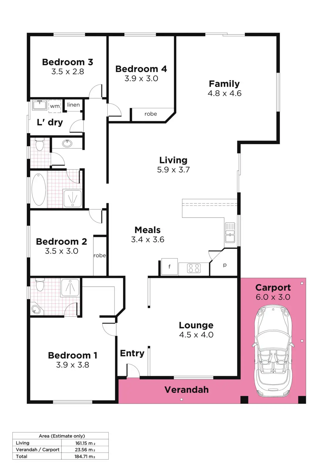 4 Bed • 2 Bath • 1 Car • 700m²