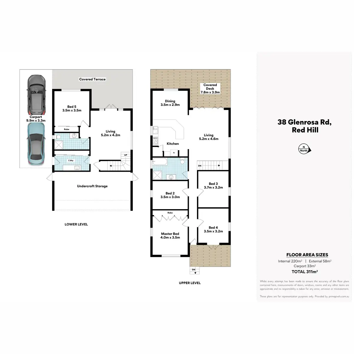Descend the central staircase into the second living area with a separate entry. Another large bedroom featuring built-in wardrobes and its own bathroom (with shower, vanity and toilet) provides options as a master suite, guest accommodation or dual living area. The lower level opens up via French doors to a spacious rear deck leading into the landscaped back garden.
