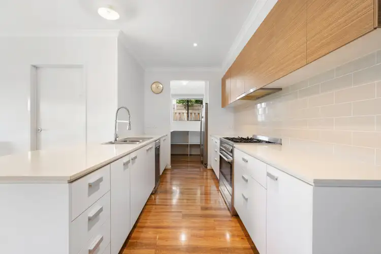 Taking centre stage, the lavishly-appointed kitchen/living/dining zone is the perfect balance of form and function offering a fully-equipped kitchen showcasing smooth stone surfaces, abundant bench space, elegant cabinetry with timber accents, subway-tile backsplash, high-end appliances and a custom-designed walk-in pantry that will meet your storage dreams.