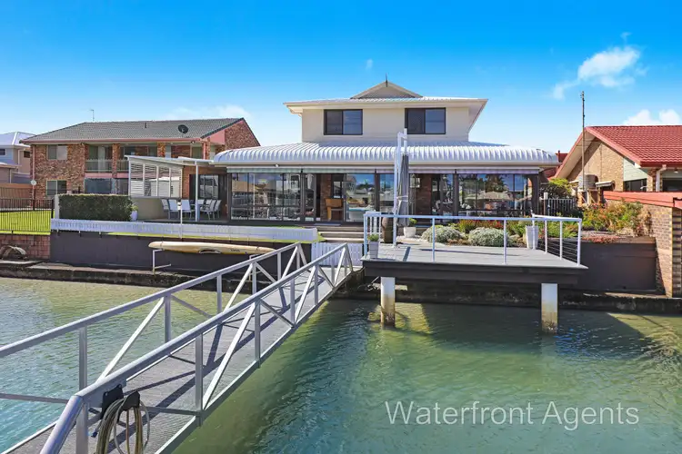 All this and more on a 728m2 allotment with a 19.7m wide frontage, a sandy beach, and a heavy-duty 10m x 2.5m pontoon to moor your "pride and joy" only moments from the harbour entrance and the deep blue Pacific Ocean.