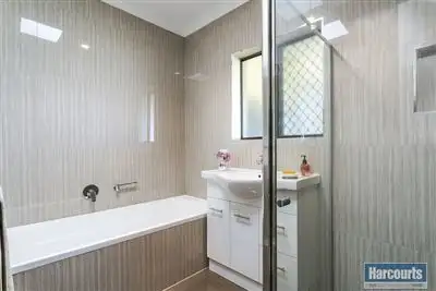 Property condition: Excellent Property Type: House Garaging / carparking: Single lock-up Construction: Brick veneer Roof: Tile and Concrete Kitchen: Dishwasher, Double sink, Gas reticulated and Pantry Living area: Formal dining, Formal lounge Main bedroom: Double, Built-in-robe, Walk-in-robe and Ceiling fans Bedroom 2: Single and Built-in / wardrobe Bedroom 3: Single and Built-in / wardrobe Bedroom 4: Single and Built-in / wardrobe Additional rooms: Family Main bathroom: Bath, Separate shower Laundry: Separate Outdoor living: Entertainment area (Covered, Paved) Fencing: Fully fenced Land contour: Flat Grounds: Landscaped / designer Garden: Garden shed (Number of sheds: 1) Sewerage: Mains Locality: Close to schools, Close to transport, Close to shopsLand details