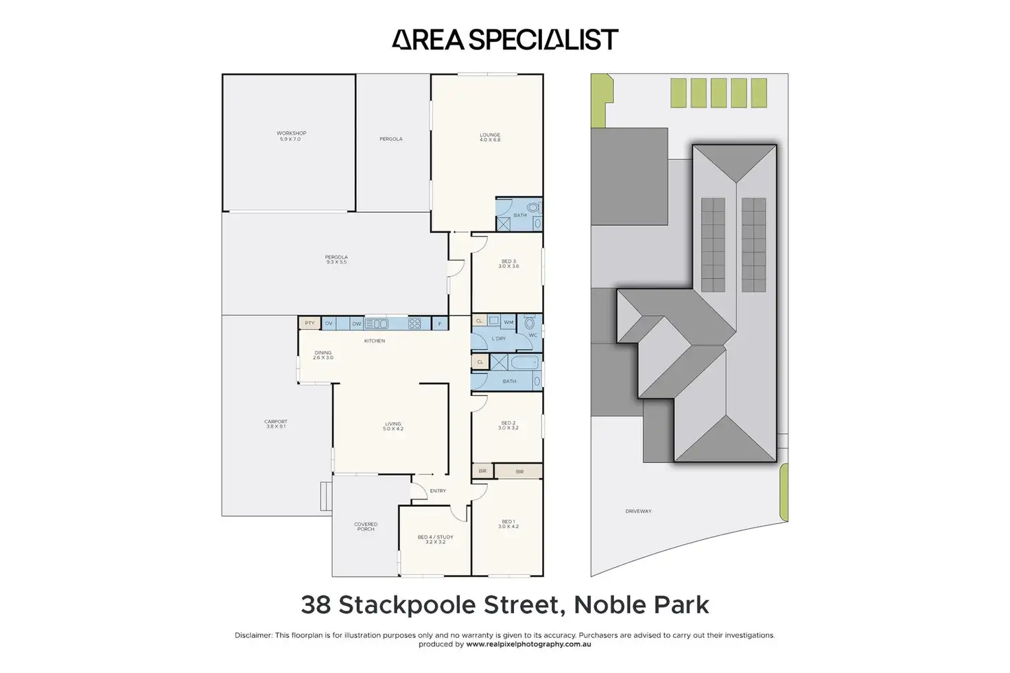 Step outside to enjoy two covered pergolas, large workshop ideal for year-round entertaining or relaxing with family and friends, tradesman's toolroom or mancave even. The backyard offers plenty of room for kids or pets, and a long driveway leads to a secure carport and double garage, providing ample off-street parking and extra storage space.