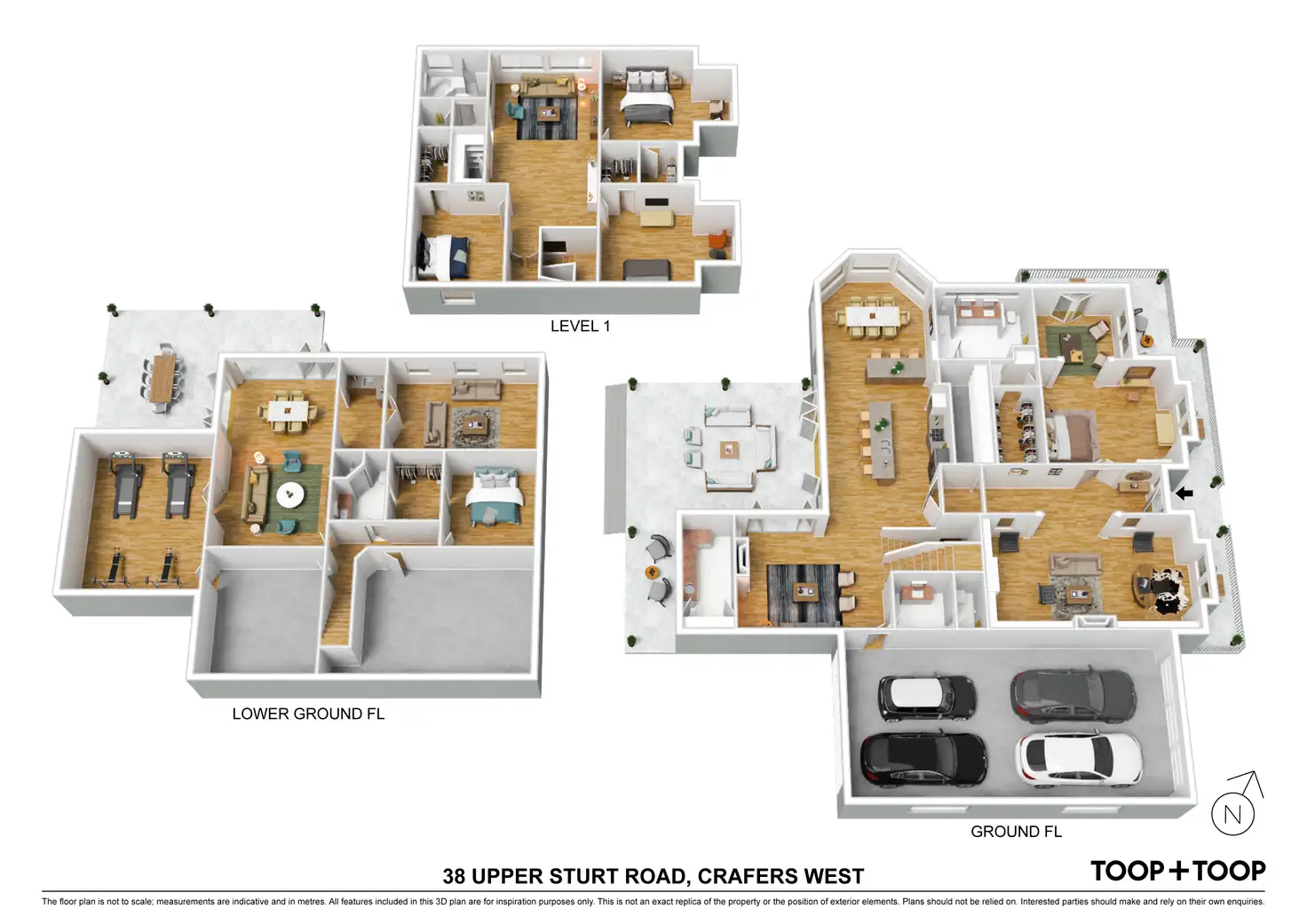 Level 1 provides a large living space, three large double bedrooms, all with walk-in robes, family bathroom with corner spa and walk-in store/linen cupboard.