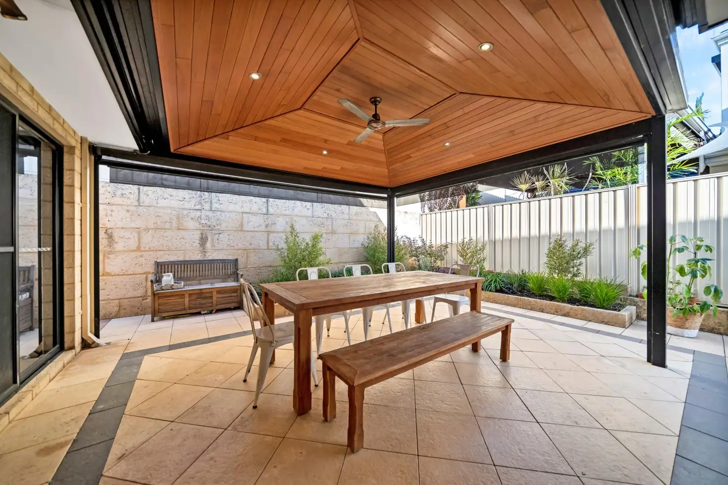 Open the glass doors and step out onto the relaxing cedar-lined alfresco area, complete with a ceiling fan to keep you cool during the summer months. Here, you can relish endless moments of relaxation with landscaped garden beds and grassed area for the kids or four-legged family members to enjoy and create lasting memories for years to come.