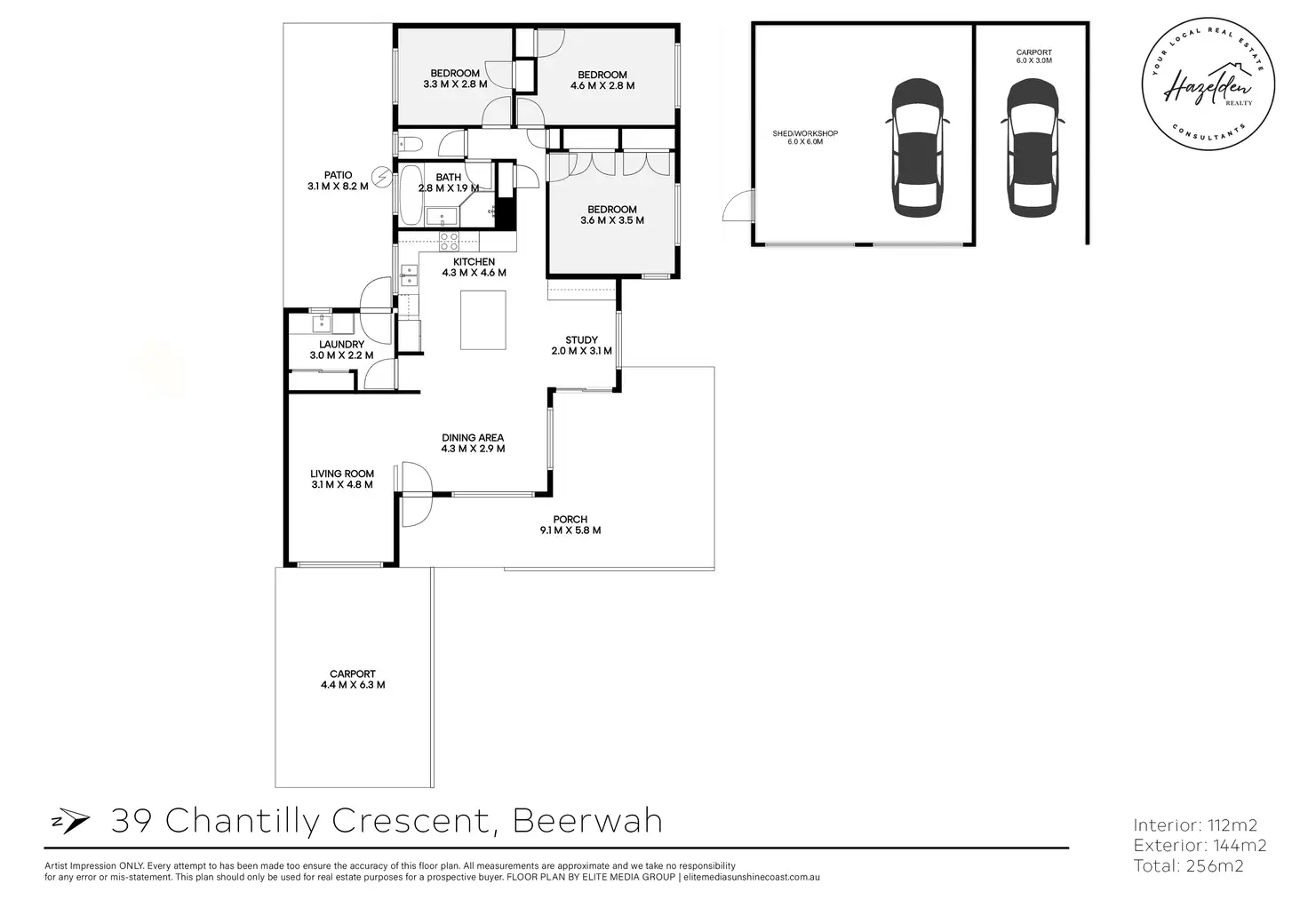 - Gated side access to a 6m x 6m, 2 bay powered shed with carport for additional storage (ideal for caravan)