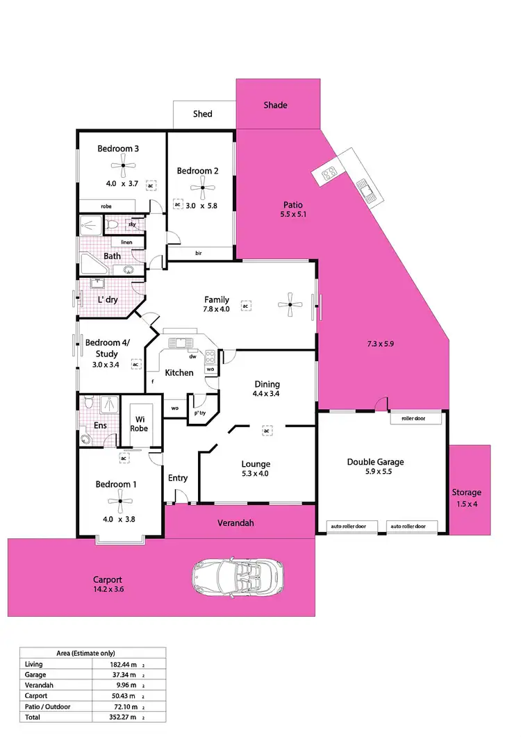 - Extra-large double garage with remote roller door entry, plus 3-car carport