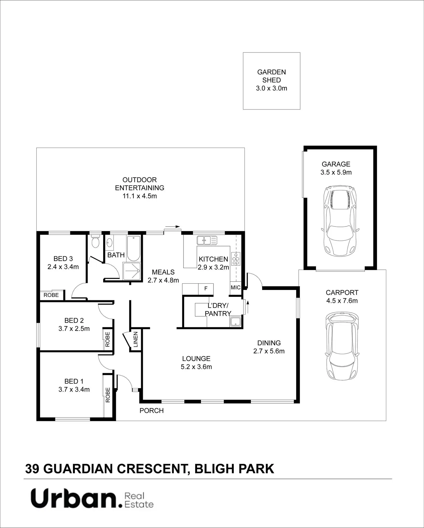 3 Bed • 1 Bath • 2 Car • 830m²