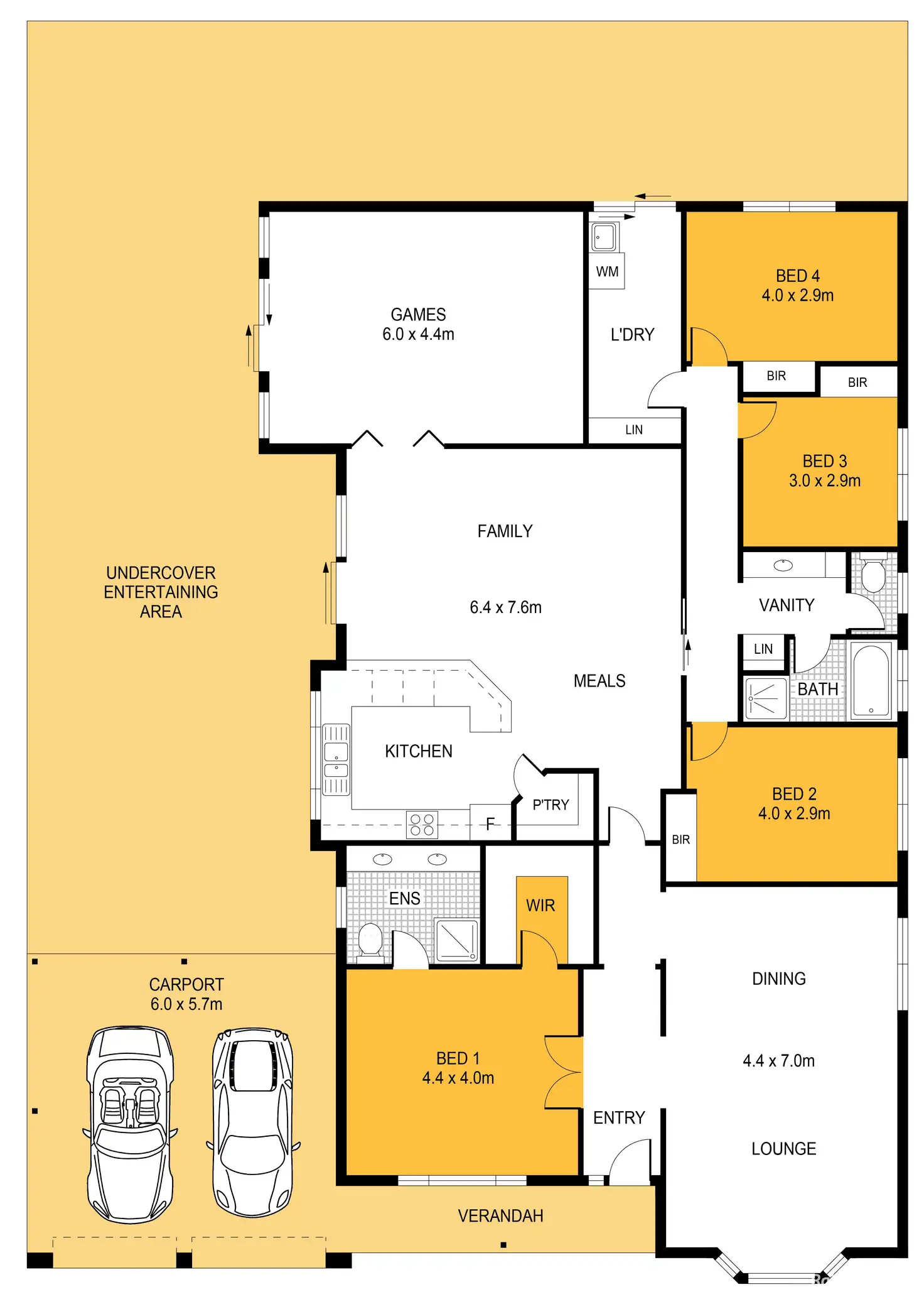 Enjoy loads of entertaining & still have space for the kids to play on their trampoline under the high gabled outdoor entertaining area. Spanning the full length of the home & joining onto the Garage UMR to encompass a huge space. A further verandah cover runs along the back of the home adding even more undercover area to the entertaining space.