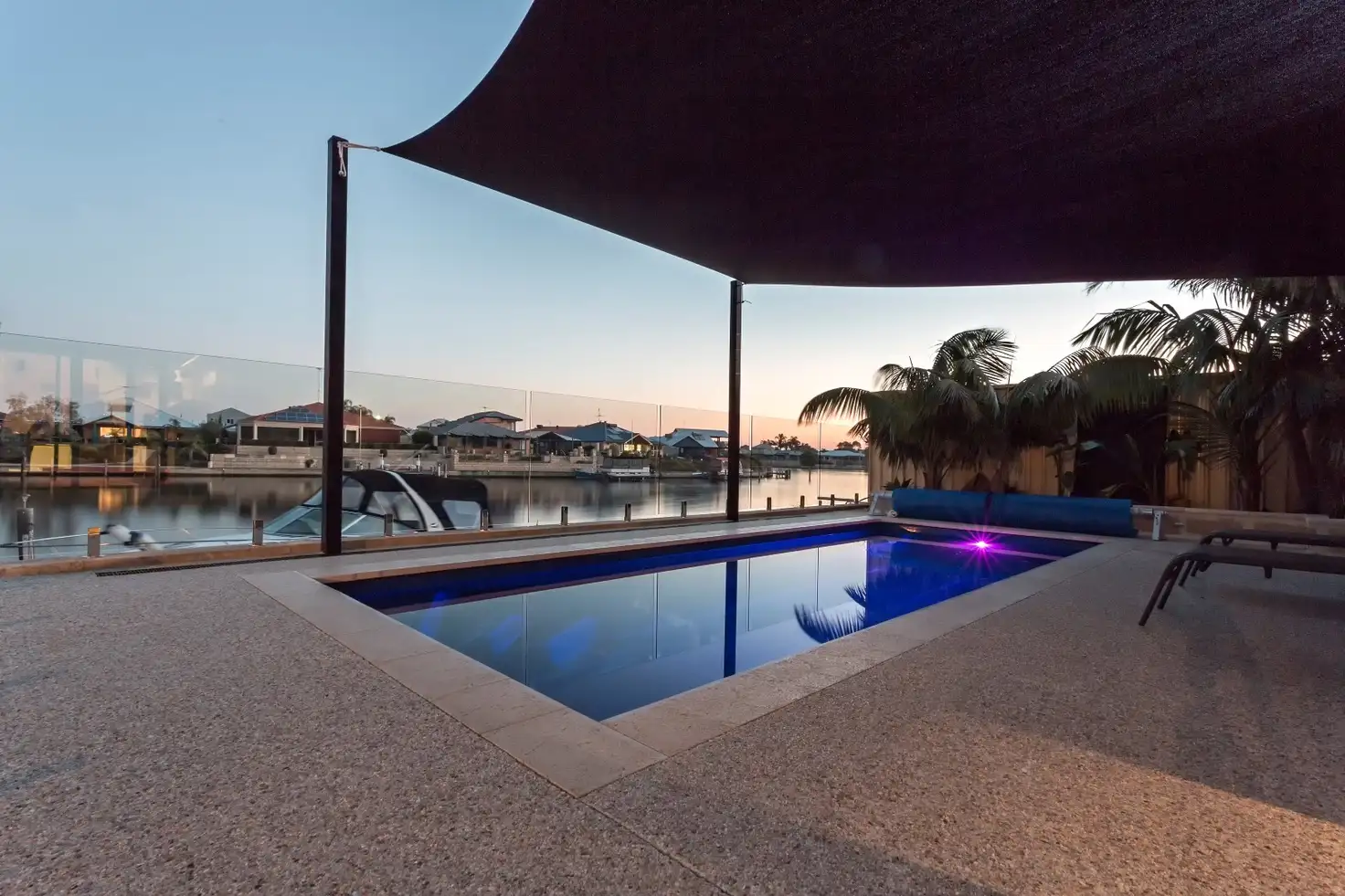 Outside is a HUGE enclosed alfresco with timber decking and is perfect for entertaining all year round! Just out from the Alfresco is your very own sparkling pool with glass balustrading overlooking the tranquil waters of the Canal. The glass balustrading has been sealed ensuring the glass won?t mark or interrupt the canal views!