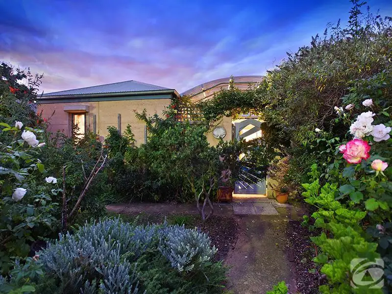 Exceptionally private, this inviting property is attractively built using rammed earth construction. Screened from the road by a mature front garden, a stylish feature garden gate leads through the wall which fronts the home, into a unique entrance courtyard. Planted with ferns and featuring a curved roof, here you gain a glimpse through walls of glass to the interior that awaits.