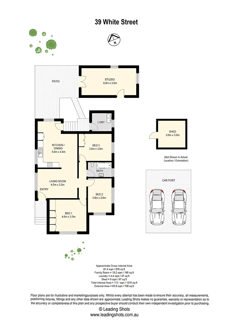 Comprising three good sized bedrooms, one modern bathroom, a well-appointed kitchen with open plan dining area and completed by the relaxing lounge room. A wonderful property with the added bonus of a detached studio that provides an extra space to work from home, accommodate teenagers or just a fantastic place to relax and entertain.