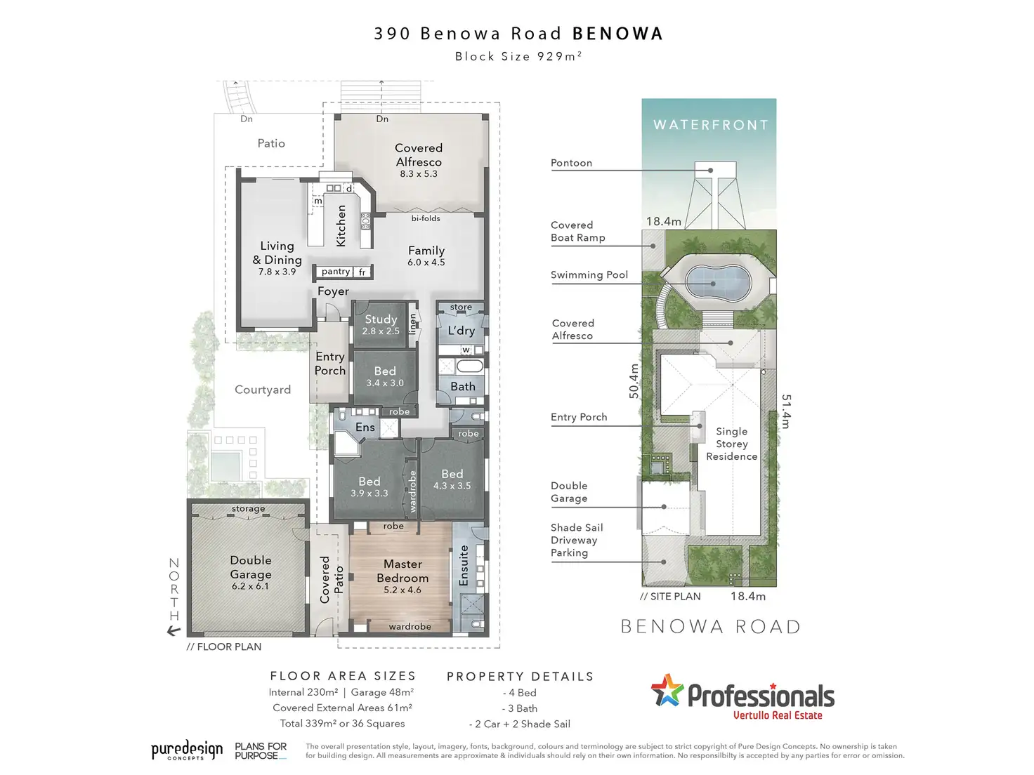 * Double lockup garage plus additional parking with shade sails