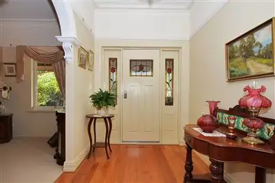 Tenure: Freehold Property condition: New Property Type: House House style: Federation Garaging / carparking: Double lock-up, Auto doors (Number of remotes: 2) Construction: Brick Joinery: Aluminium Roof: Iron Insulation: Ceiling Walls / Interior: Gyprock Flooring: Carpet and Timber Window coverings: Drapes, Blinds (Roman) Electrical: TV points, TV aerial Chattels remaining: Blinds, Drapes, Fixed floor coverings, Light fittings, Stove, TV aerial, Curtains Kitchen: Designer, Dishwasher, Extractor fan, Double sink, Breakfast bar and Finished in (Granite, Timber) Living area: Open plan, Formal lounge, Formal dining Main bedroom: King and Walk-in-robe Bedroom 2: Double and Built-in / wardrobe Bedroom 3: Double and Built-in / wardrobe Bedroom 4: Double and Built-in / wardrobe Additional rooms: Conservatory / sunroom, Family Main bathroom: Bath, Separate shower Laundry: Separate Workshop: Separate, Combined Views: Bush, Private Outdoor living: Entertainment area (Covered, Paved), Garden, BBQ area (with lighting, with power), Deck / patio, Verandah Fencing: Fully fenced Land contour: Flat Grounds: Backyard access, Landscaped / designer, Manicured, Tidy, Other (Pavillion) Garden: Garden shed (Number of sheds: 1) Locality: Close to transport, Close to shops, Close to schools Floor Area: squares: 1444Building details