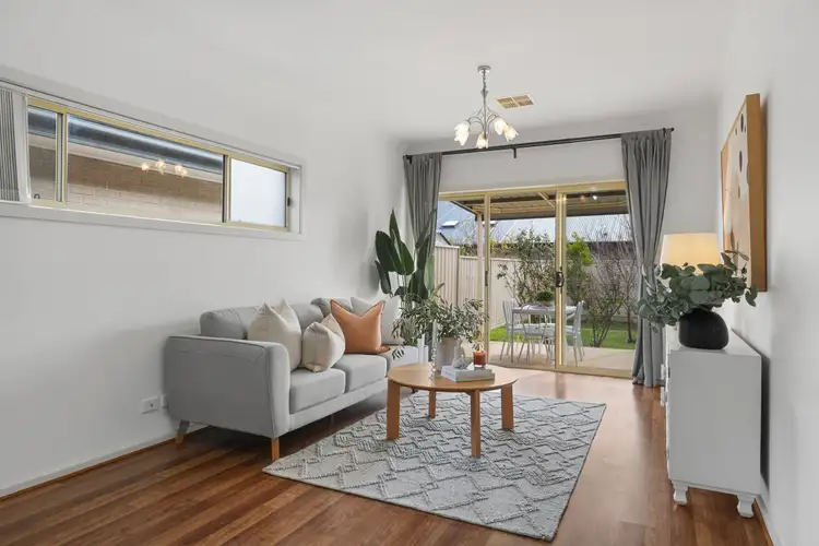 The home opens to a welcoming entry hall leading to the light-filled master suite, complete with a walk-in robe and private ensuite. Two additional bedrooms, each with built-in robes, are serviced by a stylish central bathroom with a separate bath and shower.