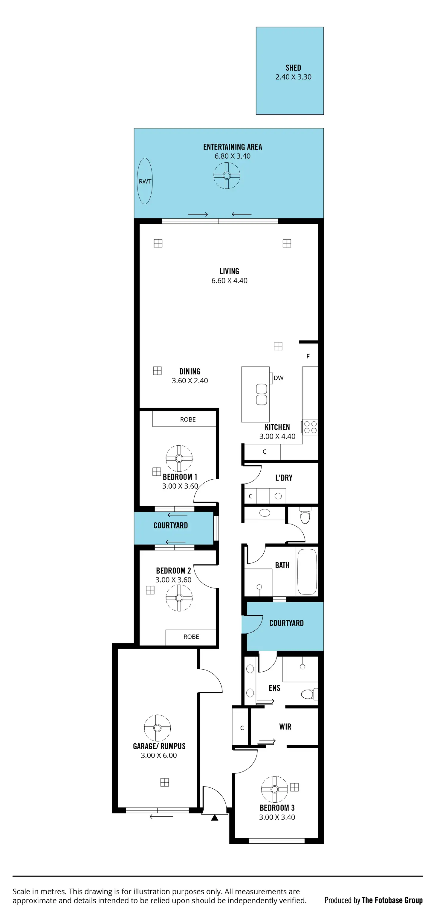 As we enter the property, we are greeted with a charming formal entry. To the right is the front-facing master bedroom which is spacious and conveniently serviced by a ceiling fan, sizeable walk in robe and modern ensuite. Bedroom 2 & 3, alike the master are also generous in size and feature built-in robes for storage convenience. To make the floorplan even more versatile, the current owner has converted the original garage into a rumpus room, perfect for a parent retreat or kids play room.