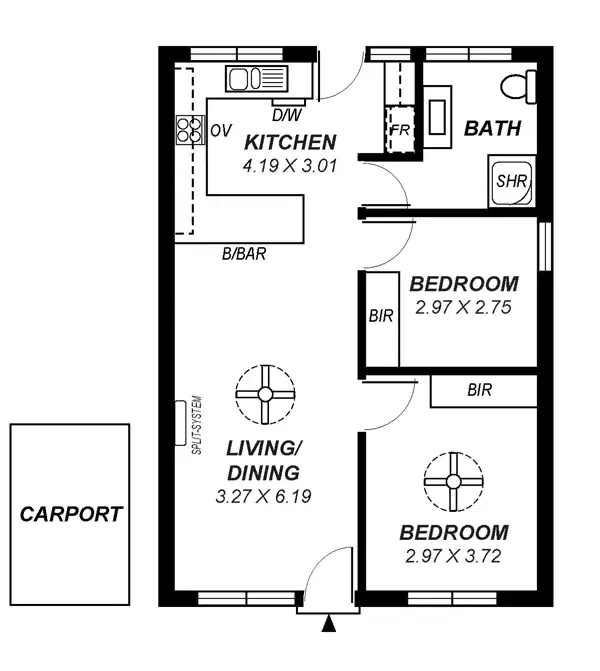 2 Bed • 1 Bath • 1 Car