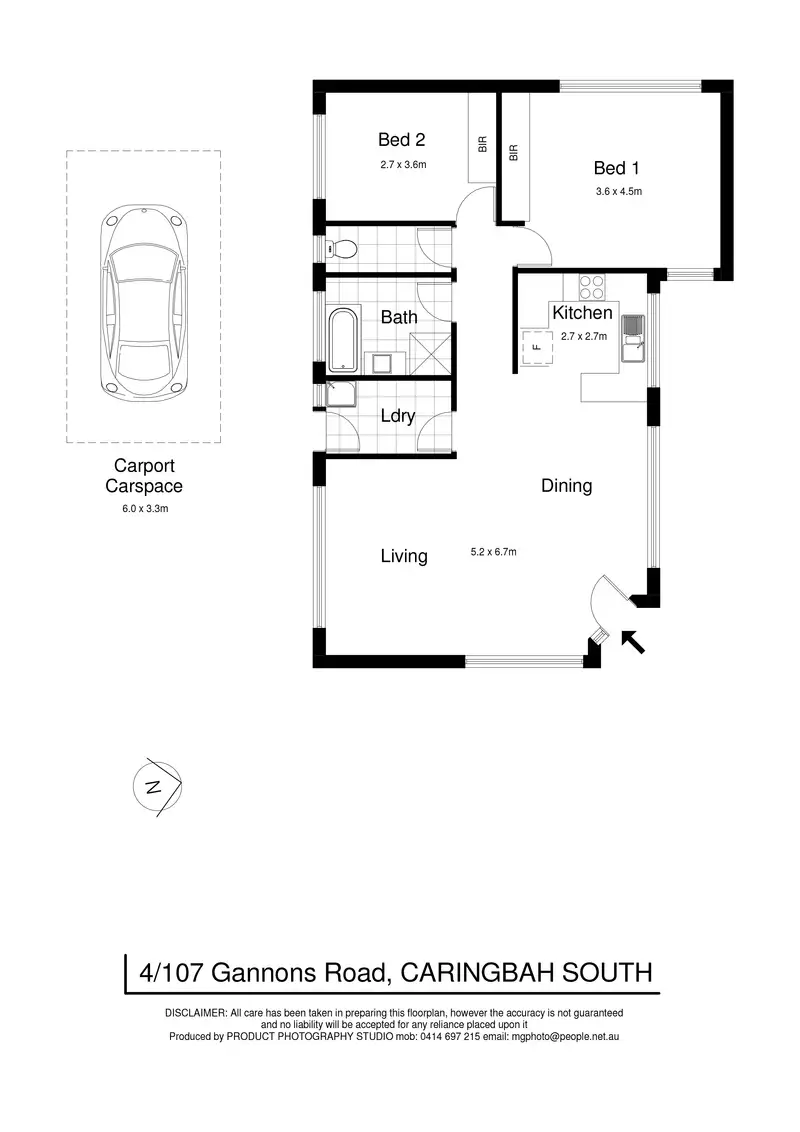2 Bed • 1 Bath • 1 Car • 105m²