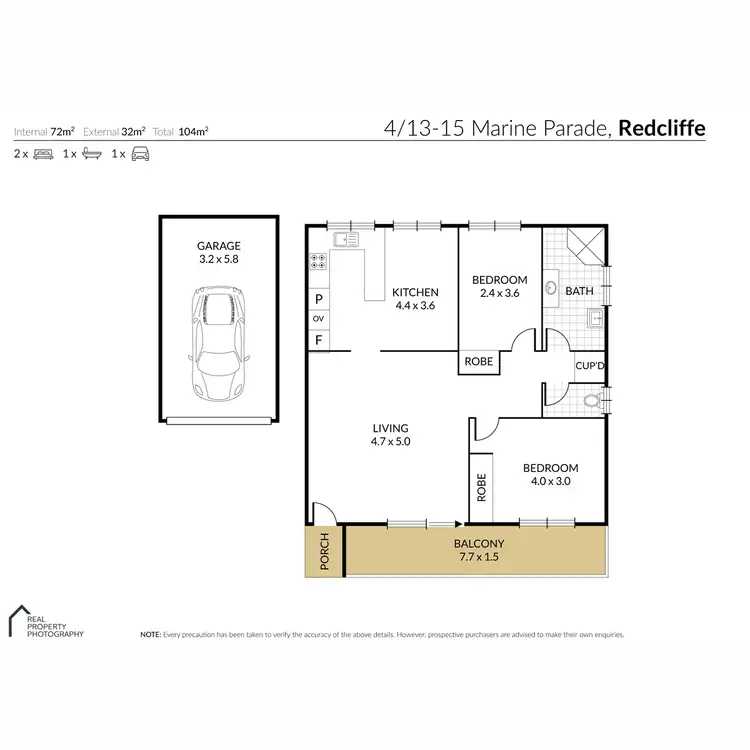 2 Bed • 1 Bath • 1 Car • 104m²