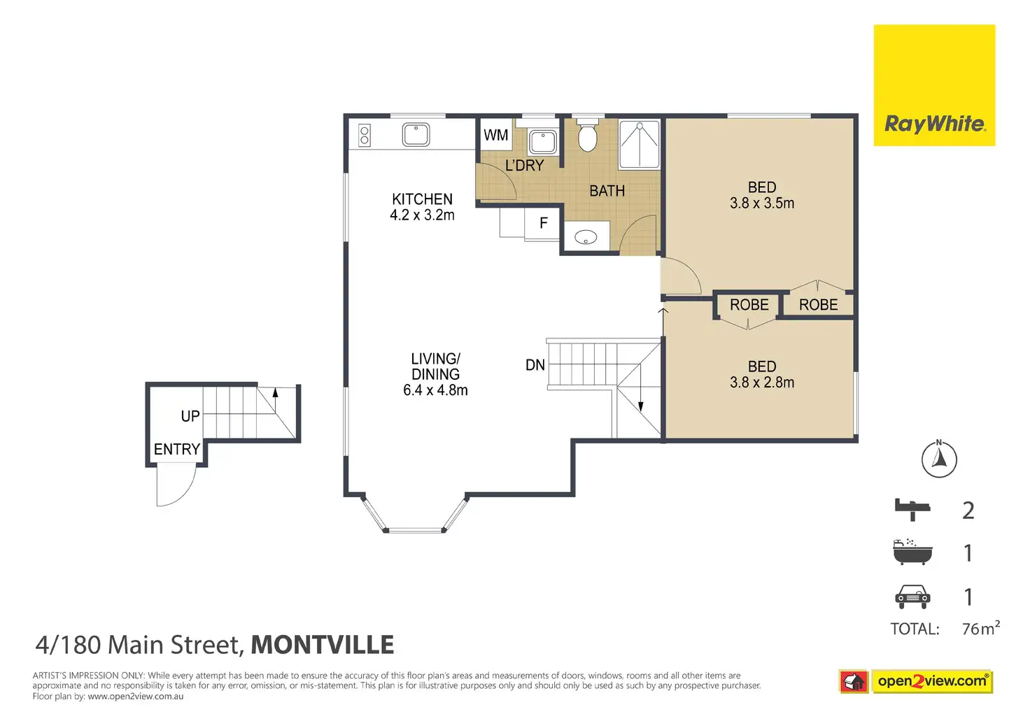 2 Bed • 1 Bath • 1 Car • 764m²