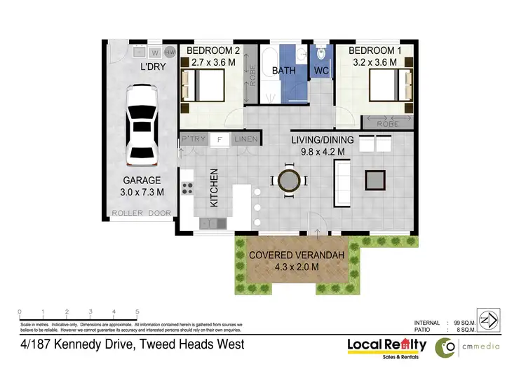 - Floor size 107sqm (99 internal & 8 patio)