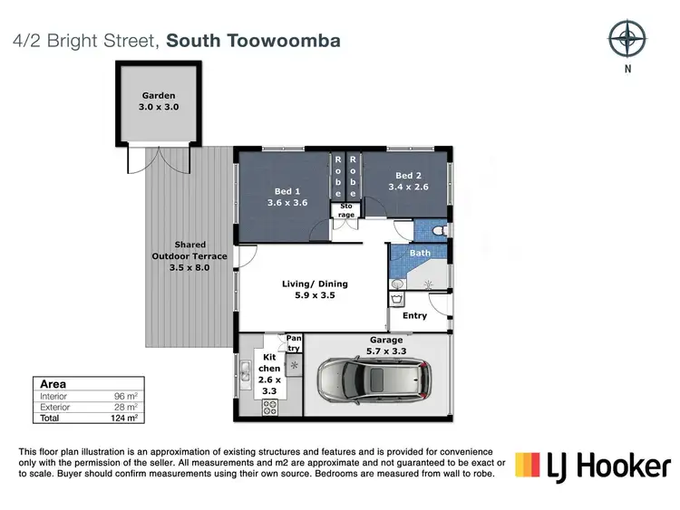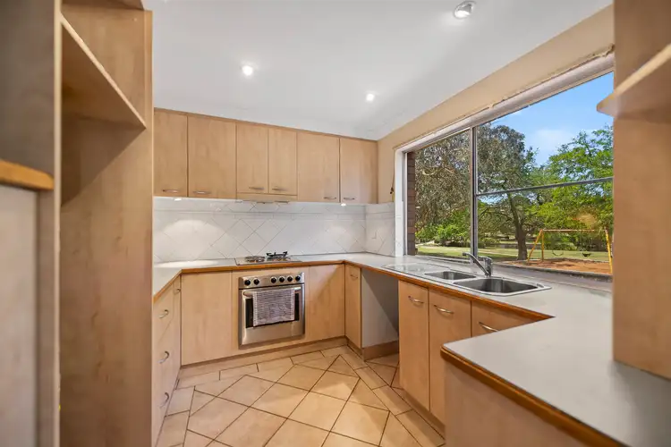 The single secure garage provides direct entry into the compact, but well-proportioned home. Enormous picture windows feature, taking advantage of the enjoyable leafy and recreational view. The well-maintained barbeque and playground facilities of Lake Annand Park can be watched from the open plan living/ dining areas, as well as the kitchen. The u-shaped kitchen has an unencumbered aspect, plenty of bench space, is light filled and functional. Each carpeted bedroom is built-in with mirrored doors and benefits from a neutral colour palette. The bathroom, which they share, has a fully enclosed shower above the corner bath. Most of the windows have security screens installed, and the carpeted living area is air-conditioned. An established hedge separates the substantial north-east facing terrace from Lake Annand Park. The laundry is unobtrusively tucked away, on the corner of the entry. Close to the entry, a carport provides an additional vehicle space.