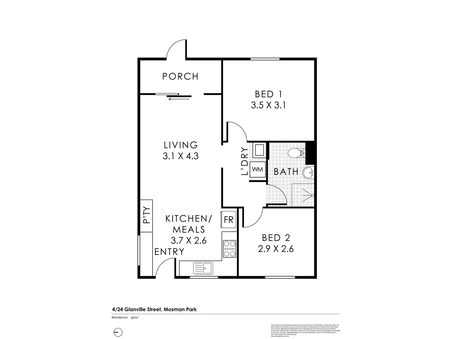 2 Bed • 1 Bath • 0 Car • 60m²