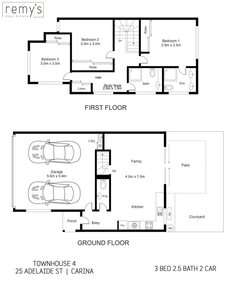 - Study nook, 3 bedrooms with built-in robes and 2.5 bathrooms